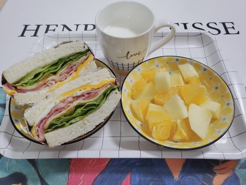 그냥 대애충 샌드위치~ 과일은 한입크기로 걍 썰어버리기