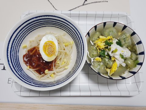 반차일땐 면요리도 가능해요~ 쫄면과 만둣국. 계란이 끝장나게 잘 삶긴날.