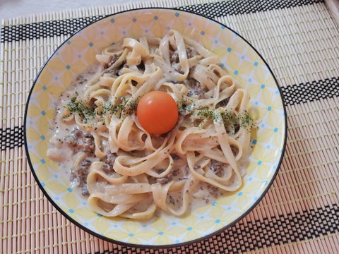 불고기 크림 파스타. 그냥 막 섞어봤어요. 후루룩 마셔버리는 아들ㅡㅡ