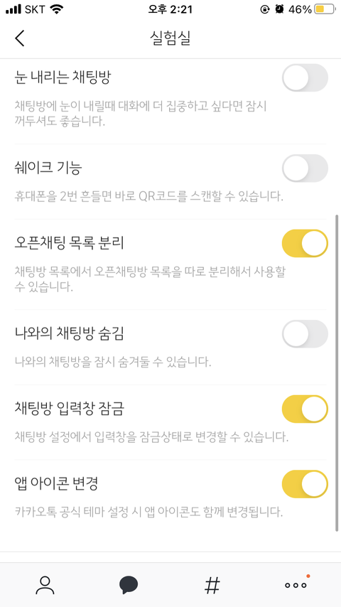 너네 카톡에 옵챗이랑 일반챗 분리 가능한거 앎?