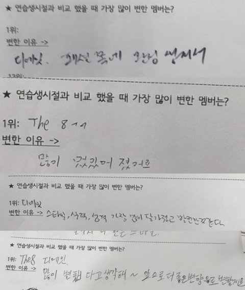 에스쿱스, 준, 디노, 본인 선정 연생시절과 가장 달라진 멤버 1위