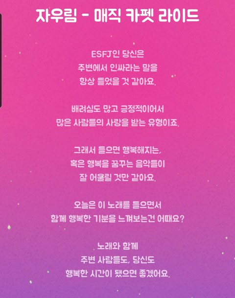 돌아다니다 발견한건데 MBTI별 음악추천? 해주는거야