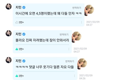 와 지민이 늦게까지 안 자는 건 여전하구나