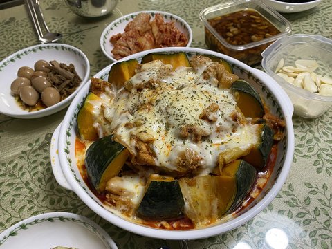 닭갈비랑 단호박은 따로 익혔습니다.