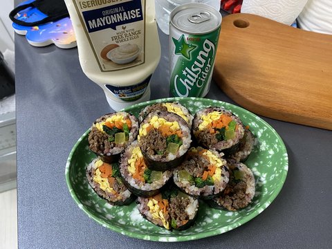 소고기김밥은 마요네즈 필수입니다.