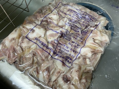 머릿고기외 부속물에 기름이 많아 한번 데쳐서