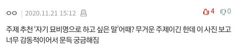 묘비명하니까 생각난건데 이거 양세형이 쓴 묘비명이거든 근데 너무 잘쓴것같음ㅠㅠㅠ 유튜브 댓글에도 있듯이 완전 양세형스러운 묘비명 아님? 센스 오짐ㅠㅠㅠㅠ