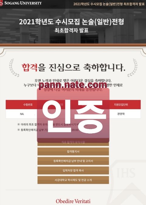 시험은 무난하게 쳤어요. 서강대 전에 친 대학을 합격할 걸 알고 있어서 전혀 떨지 않고 차분하게 논술 썼습니다. 아 시험 치기 전에 화장실 다녀오세요! 시험 시간 생각보다 긴데, 넉넉하진 않을 거예요!