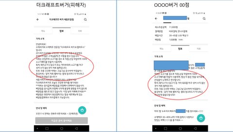 그래 그럴 수 있지.. 사정이 있겠지.. 이해하고 넘어가려 했으나,, 제가 배달의 민족에 써둔 더크래프트의 햄버거 이름과 소개, 재료소개를 자신의 배민 페이지에 그대로 복붙 해놓고 심지어 소중한 고객님이 찍어주신 더크래프트의 햄버거 사진마저 도용해 자기 가게의 햄버거인 것 처럼 버젓이 올려놓고 장사하고 있었습니다. 이에 저는 황당하여 해당내용에 대한 해명을 요구하는 내용증명을 보냈지만 어떤 연락도 해명 사과도 없이 급하게 사진을 삭제하고 배민페이지를 수정하는 걸 보고나니 그를 이해해보려 맘추스리던 제가 너무 바보같단 생각이 드네요. 일전에 그가 운영하던 00무한리필 가게도 홍대에서 배껴왔다 이야기 하던 그때 따끔히 지적해주지 못했던게 저의 잘못일까요? (저희 가게에 들락날락 할때 막았어야 했는데...)