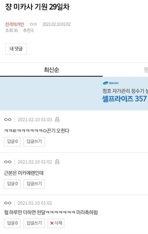 +본인은 쟝미카 기원쓰니 응원하는 김판녀입니다