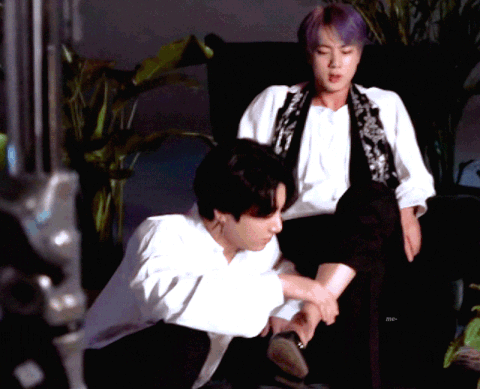 석진이한테 발목(?) 다리 뽀뽀해주는 정국이