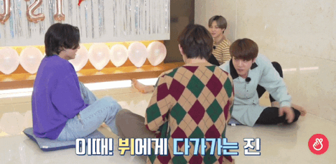 어제자 달려라 방탄에서 다가오는 석진이에게 뜬금 뽀뽀 날리는 태형이 ㅋㅋㅋㅋㅋㅋㅋㅋㅋㅋㅋ