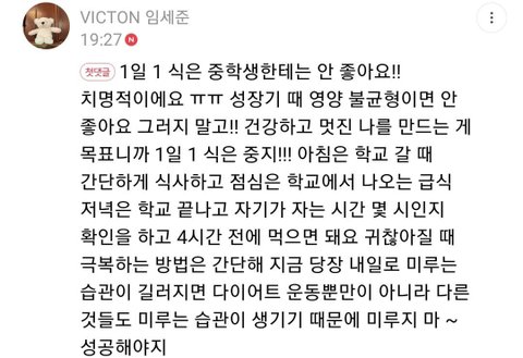 이런식으로 다이어트고민글이나 식단사진 올리면 내돌이 댓글을 달아주는 게시판임ㅎㅎㅎ