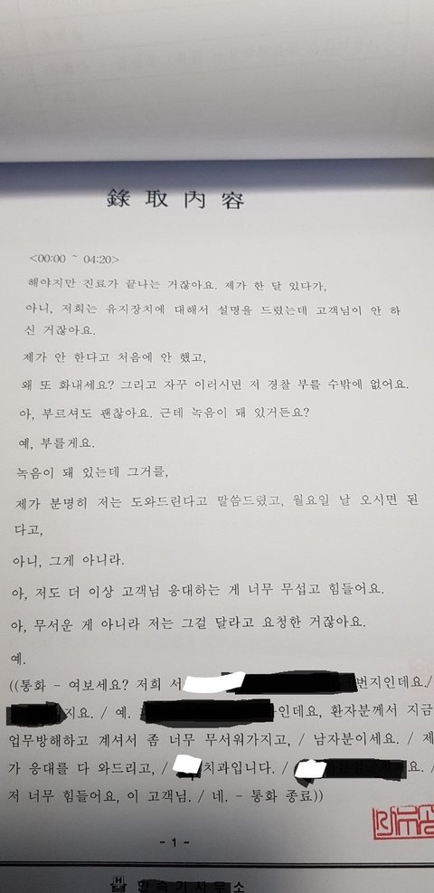순서대로 병원에서 영업방해로 신고했을때의 녹취록입니다