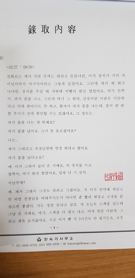 아래는 그 병원과의 녹취록입니다.