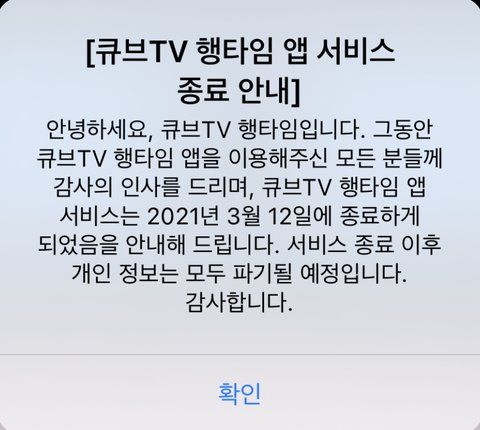 큐브티비 앱 종료하나봐