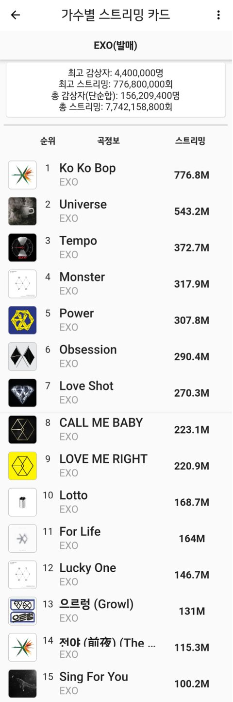 2. 엑소 (15곡)