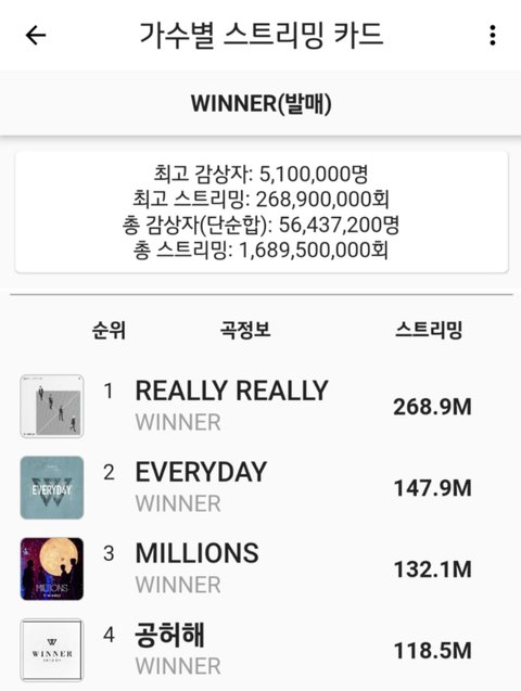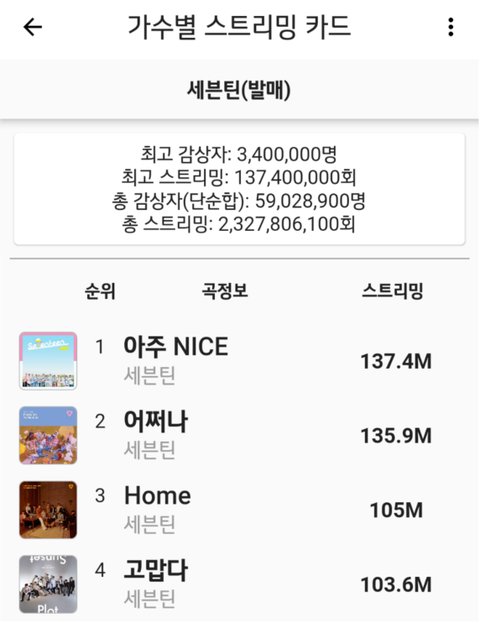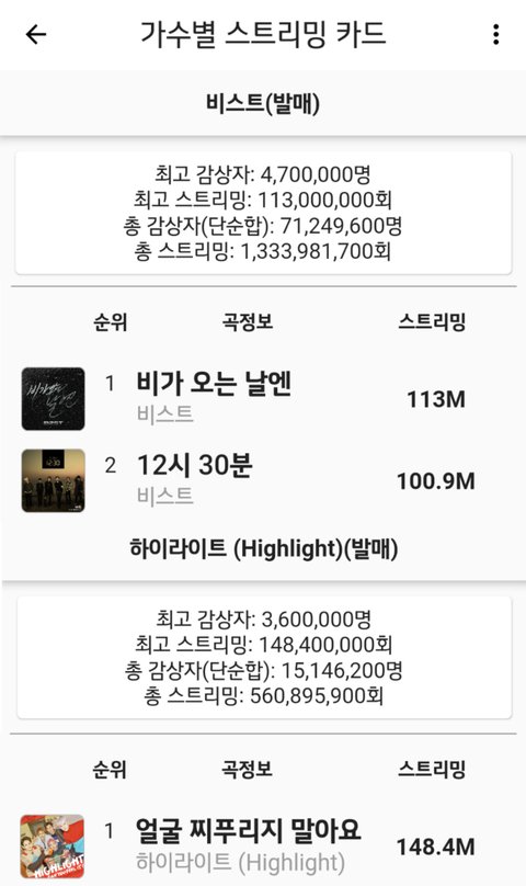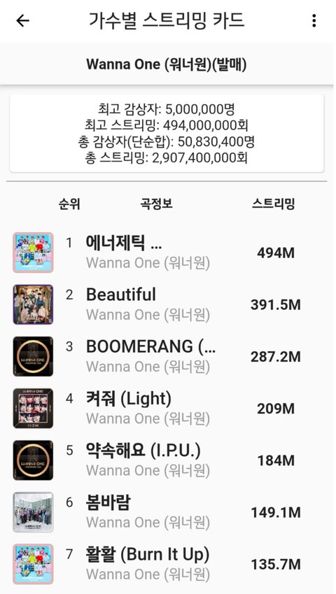 남돌별 멜론 누적 스트리밍 1억 넘는 곡들!!!