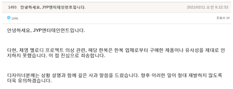 한복 업체서 구매해써 입혔는데 한복업체가 카피 한거네 걍 병신이구나..제왑이 디저이너분께 사과했대