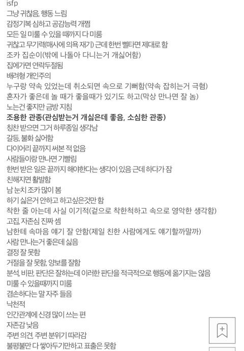 ㅇㅇ 나도 isfp인데 이거 ㅈㄴ 나임 그리고 연락 하는 거 귀찮아함... 친구들하ㄴ테 전화오면 솔직히 씹은 적도 많음..^^ 문자나 카톡은 ㄱㅊ은데 전화는 귀찮더라