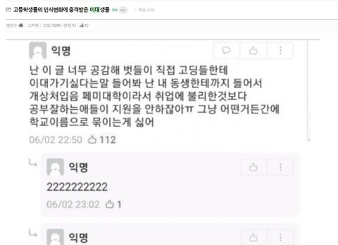 난 걍 인티에서 이대생들이 요즘 인식 충격받는다길래 판에 물어보려했지 싸우라고 한 건 아니었음ㅇㅇ....ㅈㅅ...