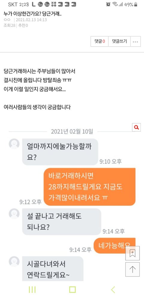 (원글지킴이) 당근거래 누가 이상한가요?