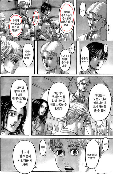 아아 그건..잊어줘라고 말한 에렌에게서 분노나 복수심은 전혀 보이지않음