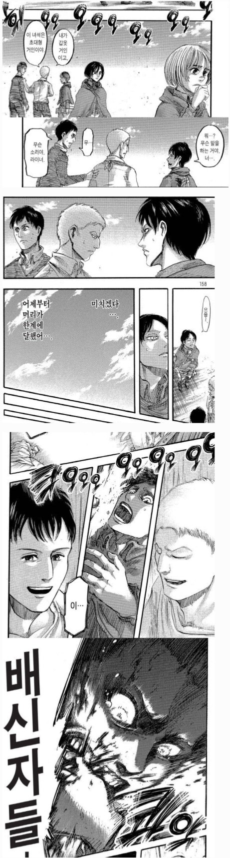 에렌은 훈련병일때부터 자기보다 우수한 라이너를 동경해왔고 거밍아웃 김찌된찌할때도 라이너가 거인이라는걸 예상했으면서도 곧바로 받아들이지 못하고 망설이다가 이이이이 배신자들아 소리지름 이때는 동경과 우정이 분노로 바뀜