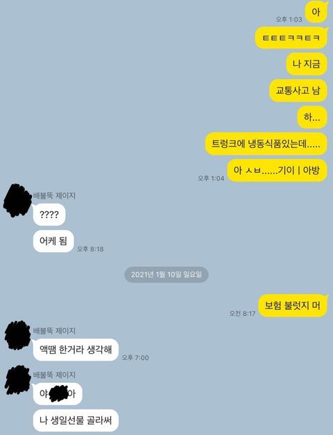 교통사고났는데 자기생일선물 달라고 하는 친구요