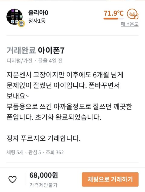 중학생 조카가 당근마켓으로 아이폰7을 구입함