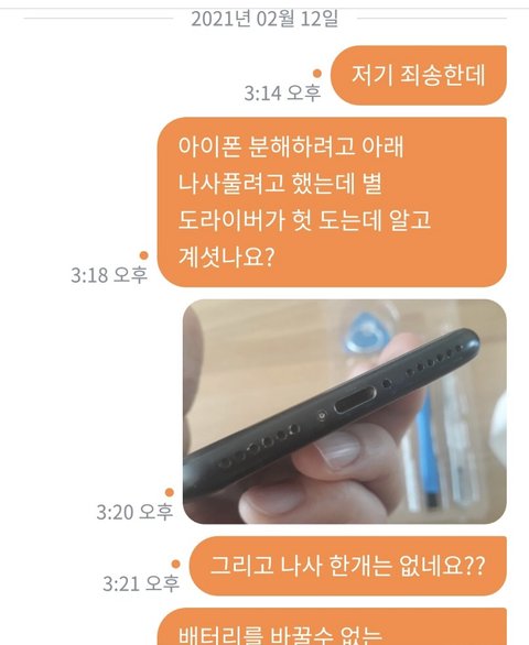 드라이버로 아이폰 나사를 풀려고 하단을 봤는데...