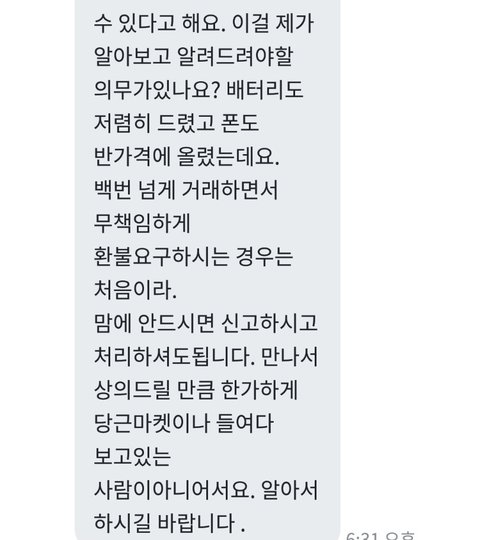 판매자 분이 저렇게 나오니까 너무 억울해서 올렸어요.