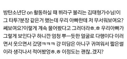 뷔 자기무서워보이는지 물어봤다는거 조눗ㅌㅋ