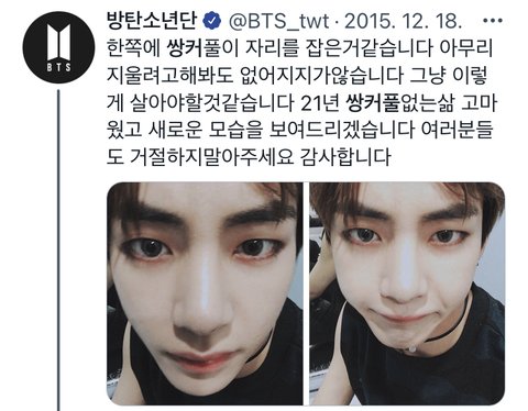 아래는 우리 김뷔 짝눈이 탄생한 날 텽이가 올린 트윗!!