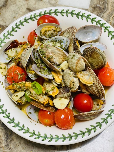 조개술찜. 간단하고 비주얼도 좋은 음식. 조개가 싱싱하면 다 됨. 캠핑음식으로 굿.
