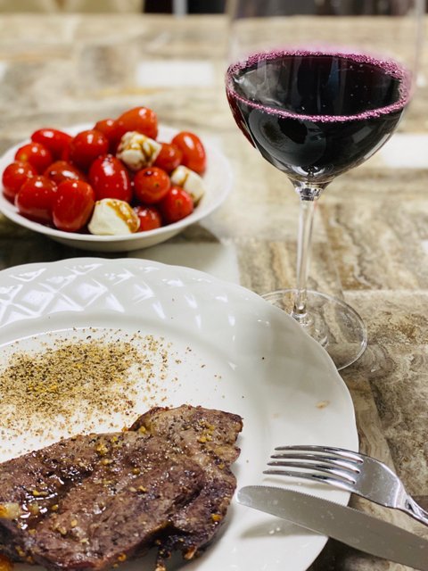 스테이크 구워 카프레제샐러드 간단히 만들어 와인 한잔.