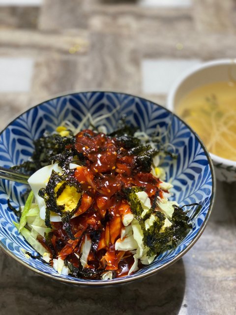 어느 날은 쫄면이 넘 먹고싶어 급 쫄면 만들어먹기. 양념소스가 성공적으로 잘만들어져 다행.