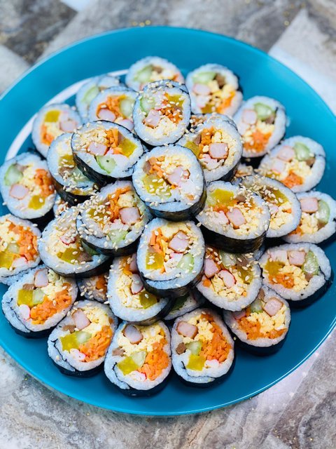 종종 만들어먹는 김밥. 김밥 한번 하면 이 날 점심, 저녁 식사는 해결.