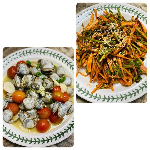 조개술찜이랑 오징어미나리초무침으로 술한잔.