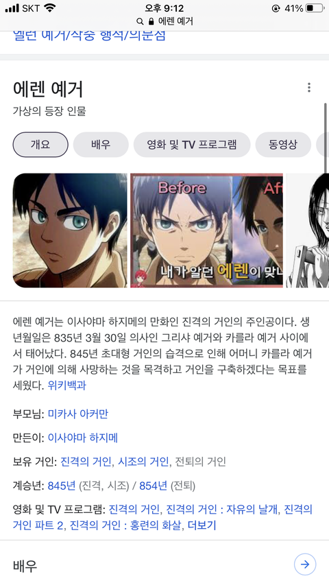 아니 구글에 에렌 예거 치면 왜 부모님이