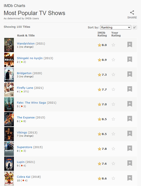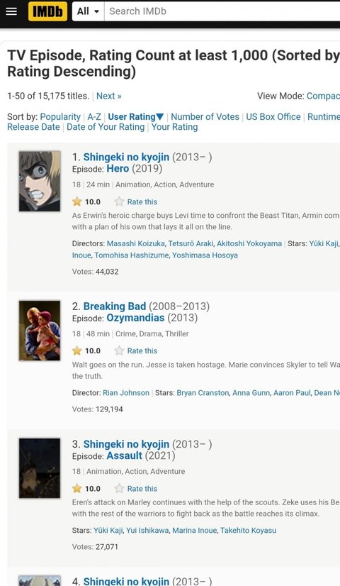 imdb 1등 브레이킹배드, 왕좌의게임 제치고 1등