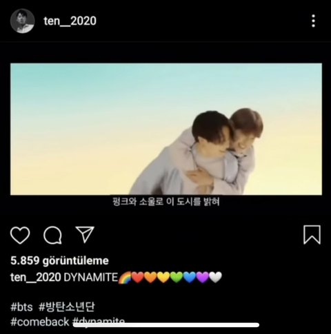 이 분 ㅂ탄 백댄서신데 다이너마이트 뮤비에 국ㅁ 캡쳐하시고 무지개 이모티콘 올리셨대..ㅌㅇㅌ에서 본 글이야 !! 원래글 https://t.co/4bbidsU4BG