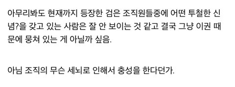 2. 조직에서 내세우는 어떤 주장에 이끌려 들어왔는데 세뇌 당함.