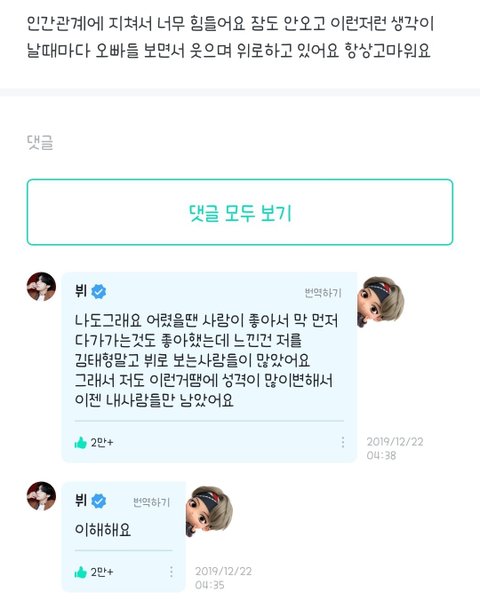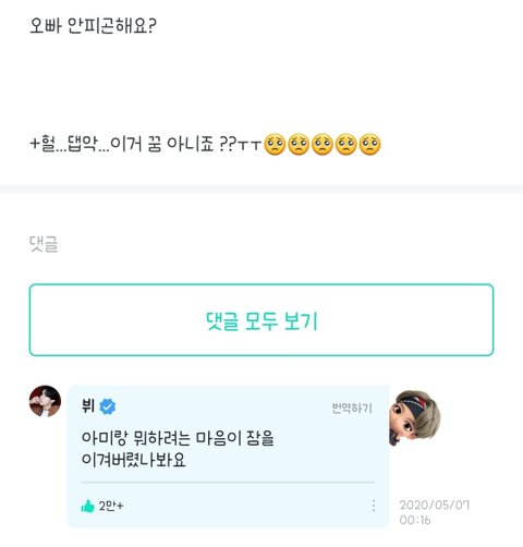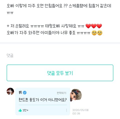 아미들아 댓글로 태형이 예쁜 짤과 위버스 모먼트 많이 풀어주라!!
