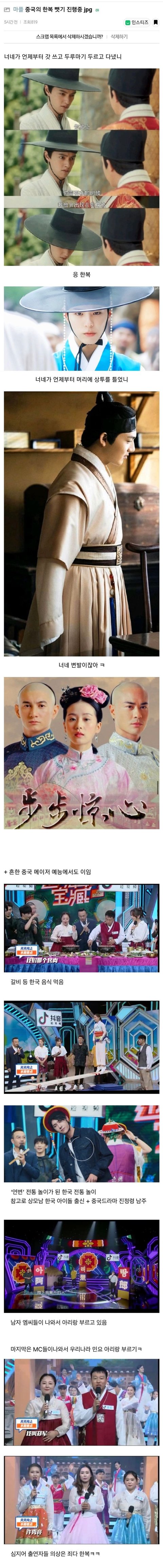 한복 뿐만 아니라 갓, 가채, 상투, 부채춤 등 전방위적으로 중국문화라고 날조 중