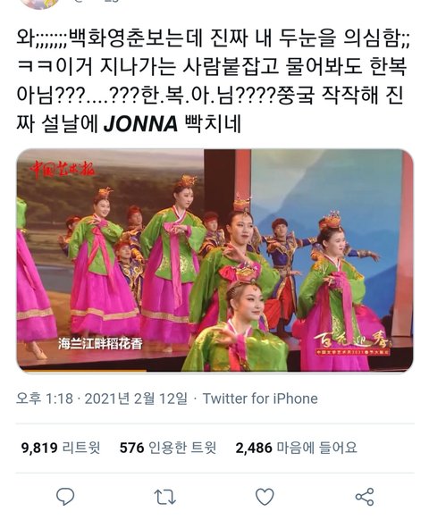 방송에서는 중국 전통복이라고 날조 중
