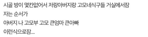 시골 방이 몇칸없어서 저랑아버지랑 고모네식구들 거실에서잠