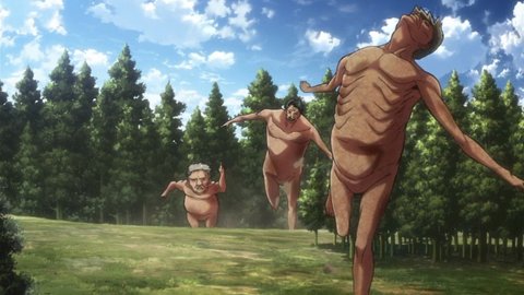 "거인 출현!"원작과 같이 15m급 거인이 나타났고 리바이,이자벨,팔런은 거인을 해치움