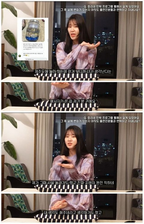제주도 오니까 너 생각난다고 메시지를 먼저 보내줬다는 아이유