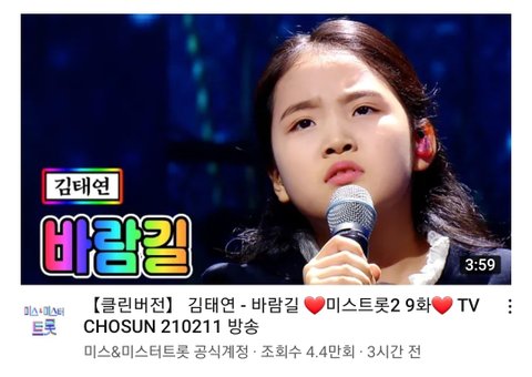 지난주 공개 됐는데도 미스트롯2 조회수 좋아요수 1위임